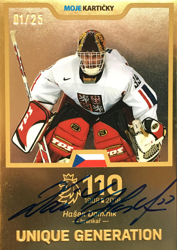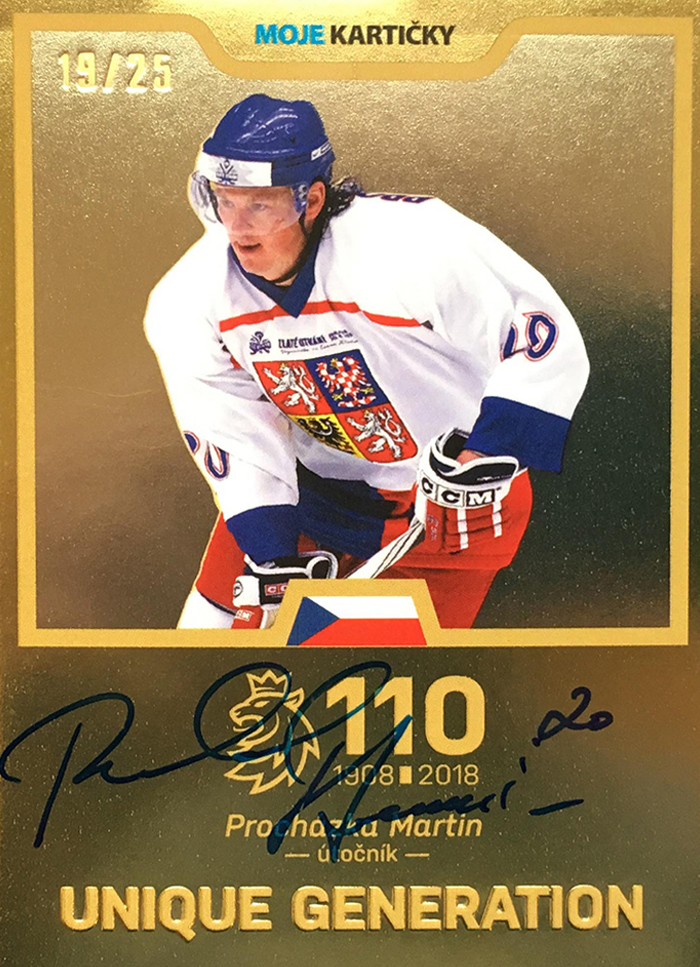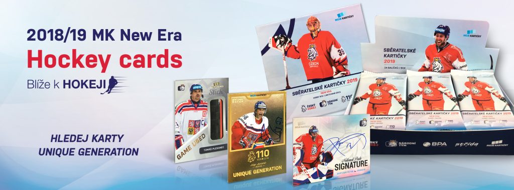 I sérii národního týmu pro sezónu 2018/19 vydáváme jako limitovanou edici. Přicházíme s podtitulem „New Era“. My věříme, že v českém hokeji dochází k posunu, k řadě pozitivních změn, jak na úrovni svazové, sportovní, tak i v myšlení. Série také reflektuje významné výročí této sezóny, a to 110. let českého hokeje, zachycené v exklusivní sérii Unique Generation. Základní set obsahuje 42 hráčů aktuálního národního týmu. Dále také 98 karet 3 subsetů (tým MS 2018, U20 a Game Dated Moments). Subset Game Dated Moments zachycuje významné momenty z historie českého hokeje. K základní sérii existují 2 paralelní limitované verze. Gold s limitací xx/25Gold Rainbow s limitací pouze x/5! Insertní série: Junioři U18, tým z Hlinka Gretzky Cupu 2018 (limitace xx/33). Existuje také exklusivní „double“ podpisová verze xx/15. Bonusem Hlinka Gretzky Cup série je dvoukarta Ivana Hlinka a Wayna Gretzkyho, na které jsou vyražené podpisy obou velikánů světového hokeje. Opět jsme připravili také podpisovou sérii National Pride Signatures, individuálně číslovanou dle počtu získaných podpisů. Dalším insertem je Unique Generaton! Exlusivní insertní série k příležitosti 110 let českého hokeje. Ručně podepsáno významnými hráči tzv. „Zlaté generace“. Individuálně číslováno – jen 25 ks! Poslední insertní sérii je Game Used Memorabila, ručně vyráběné kartičky s kousky použité hokejové výstroje (hokejky, rukavice, brusle). Také číslováno xx/25.